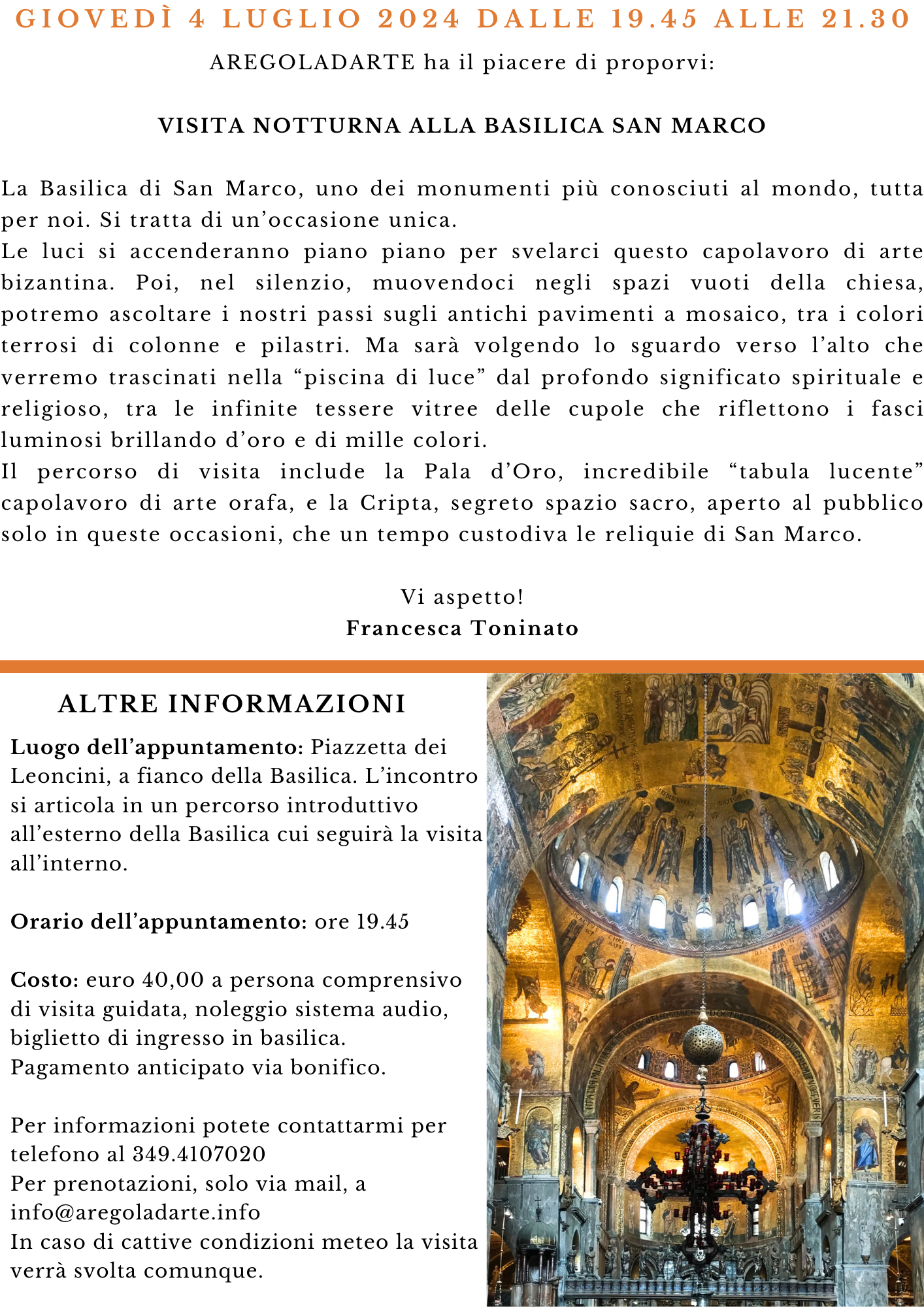 VISITE A RACCOLTAVISITA NOTTURNA ALLA BASILICA DI SAN MARCO Pubblicato il 20 Giugno 20248 Ottobre 2024 da Aregoladarte 20 Giu Aregoladarte CASTELLO DI SAN SALVATORE I 40 DOMENICANI A TREVISO