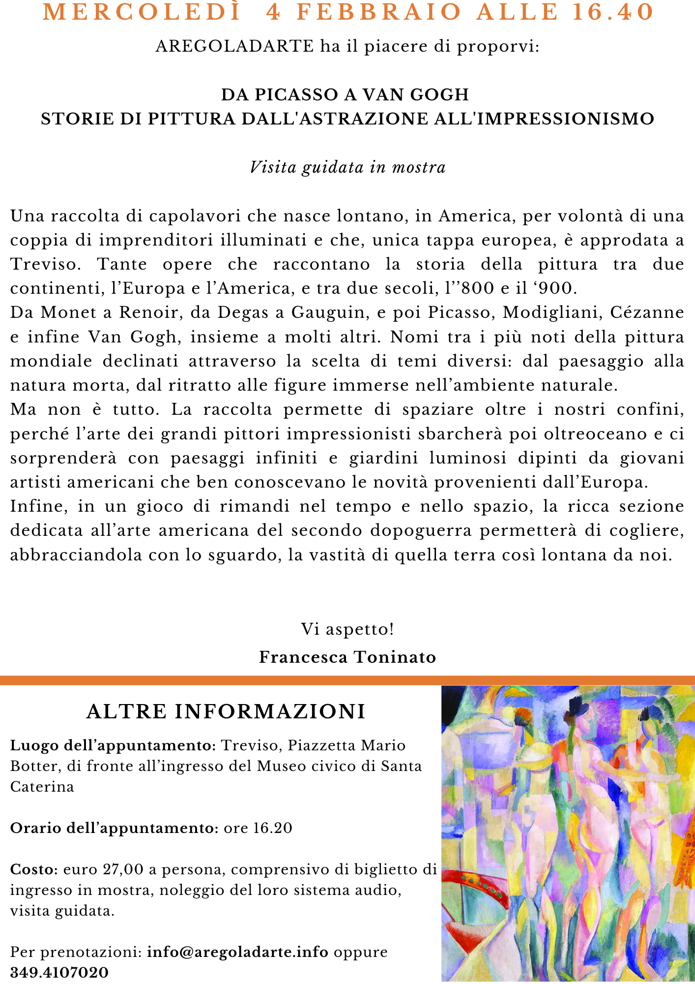 VISITE A RACCOLTADA PICASSO A VAN GOGH Pubblicato il 10 Gennaio 202626 Gennaio 2026 da Aregoladarte 10 Gen Aregoladarte LO SPLENDORE DELL’ARTE A VENEZIA BANKSY E LA STREET ART