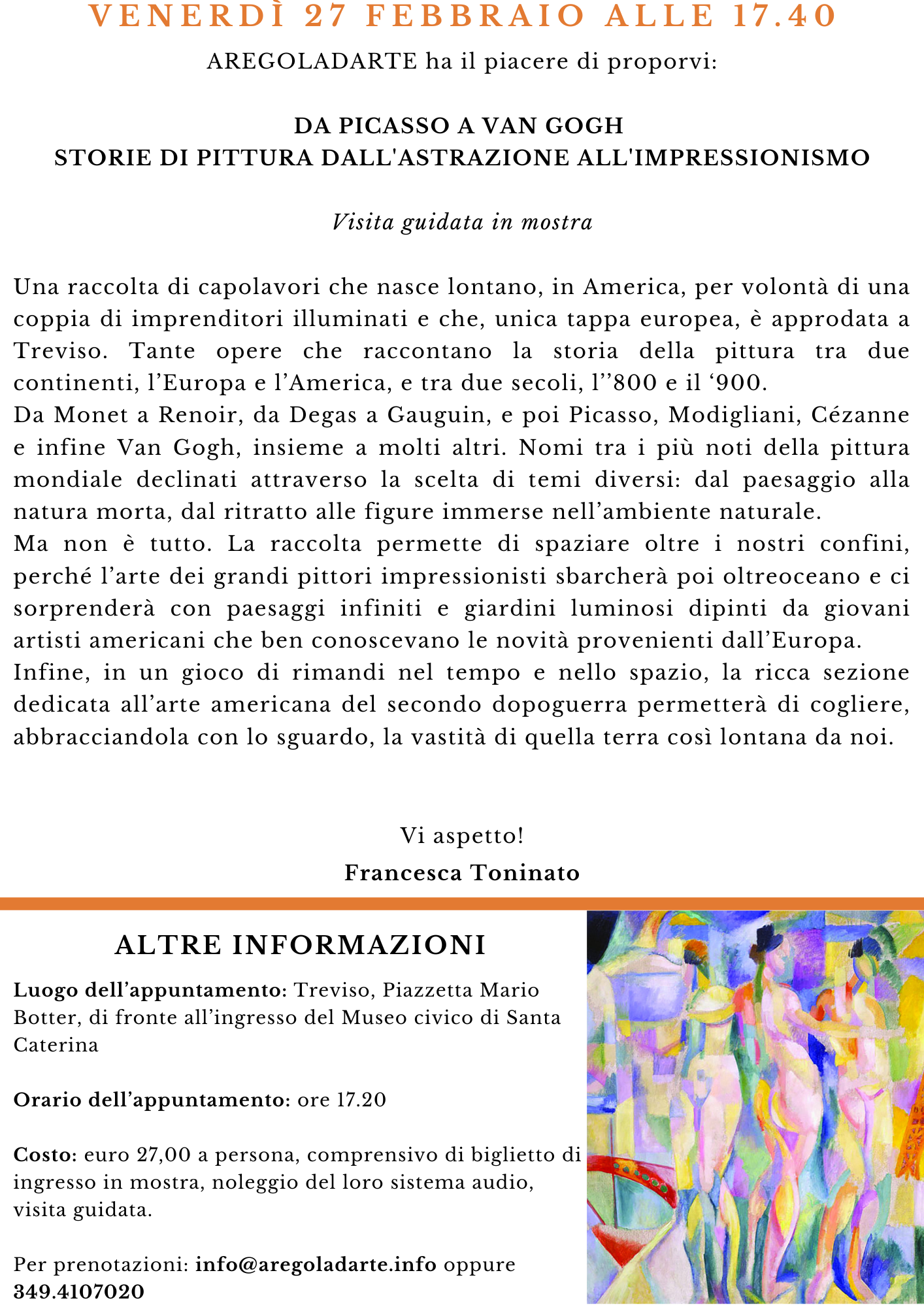 VISITE A RACCOLTADA PICASSO A VAN GOGH Pubblicato il 26 Gennaio 20265 Febbraio 2026 da Aregoladarte 26 Gen PRENOTA ORA! Aregoladarte BANKSY E LA STREET ART FORESTI A VENEZIA: I TODESCHI