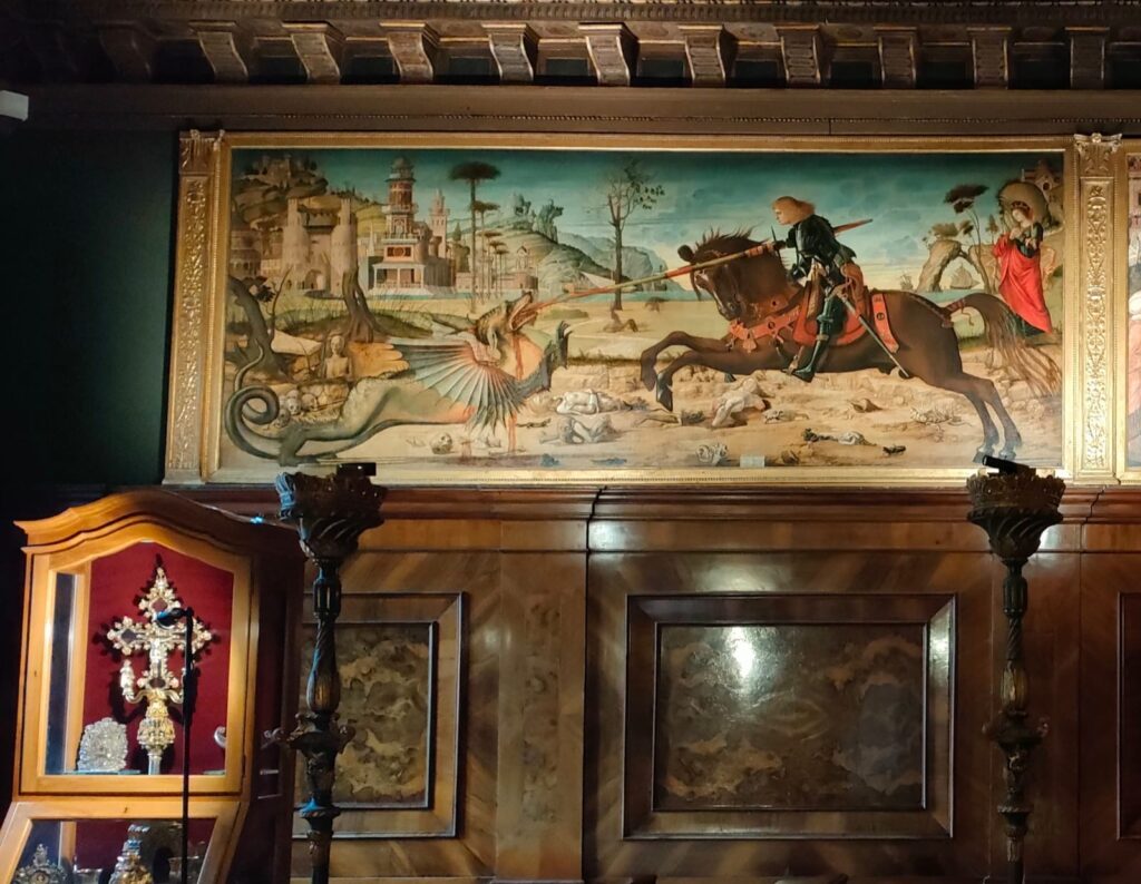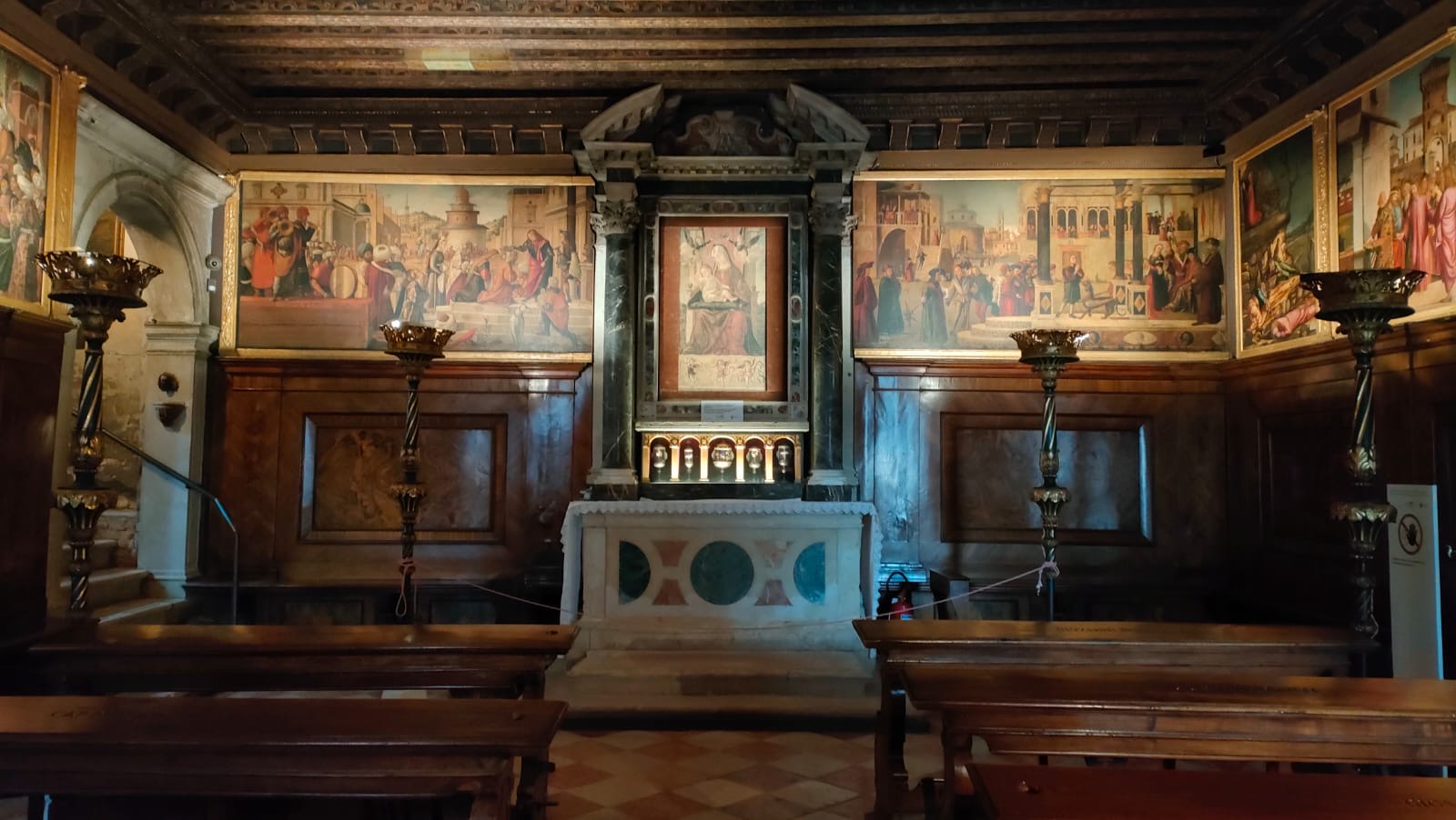 Ma è appena varcata la sua soglia che il nostro sguardo può cogliere un mondo di racconti e immagini che solo un potente narratore di storie come Vittore Carpaccio poteva concepire.